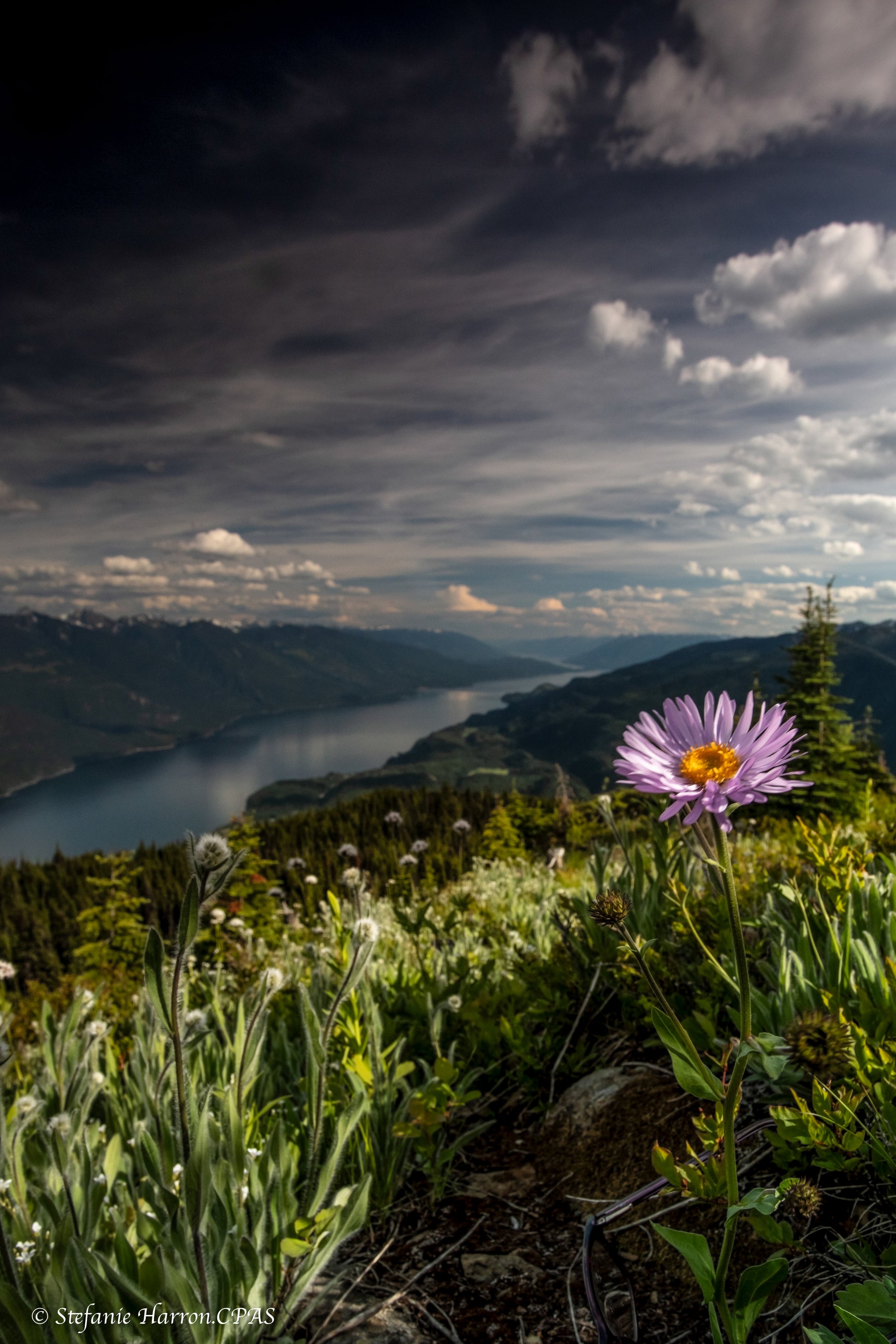 Wildflowers Over Kootenay Lake, The light from passing thunderstorms on Mount Buchanan Summit made for some ethereal but beautiful photographs
